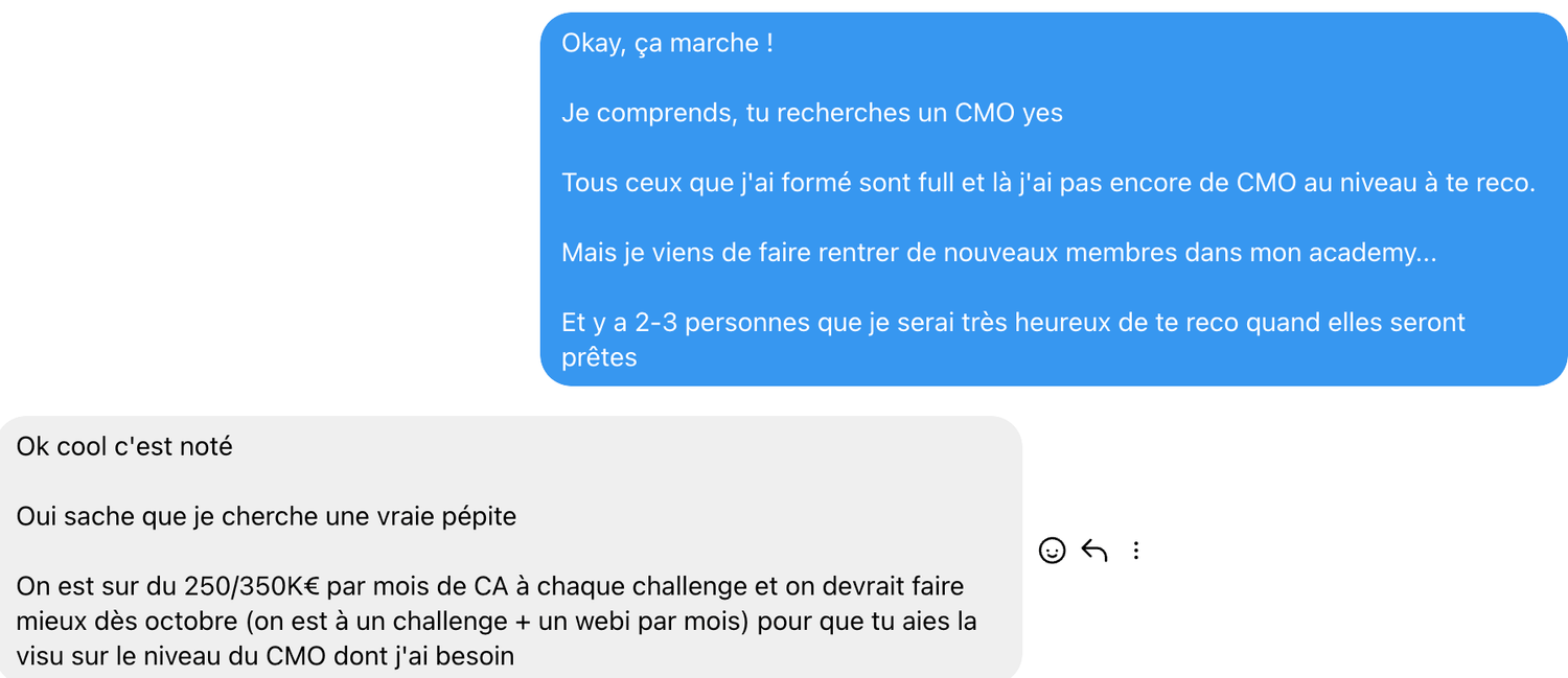 Encore un échange avec un entrepreneur qui recherche un CMO...