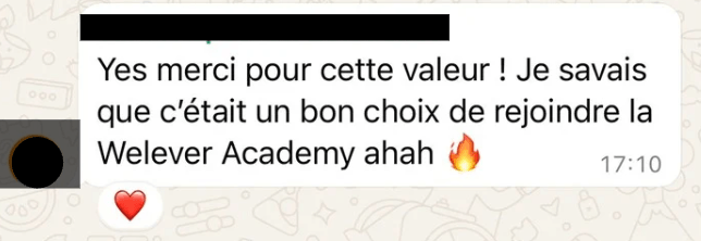 La Welever Academy est un programme de formation marketing digital en ligne incluant un espace membre, des outils, des frameworks prêts à l’emploi et des sessions de support collectif. Ce n’est pas une prestation de service individuelle de coaching ou de consulting.